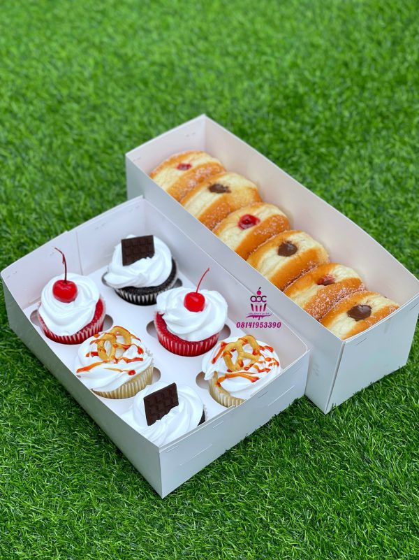 Home / Combos / 6 Cupcakes & 6 Filled donuts 6 Cupcakes & 6 Filled donuts₦17,000.00 Kindly state cupcake flavors *Available flavors are: Red velvet, Vanilla & Chocolate Kindly state donut fillings *Available fillings are: Strawberry Jam & Chocolate Order note (optional) (+₦500.00)Special message to the recipient Write a Note (+₦500.00) Product total Options total Grand total 6 Cupcakes & 6 Filled donuts quantity Add to cart Category: Combos Reviews (0) Reviews There are no reviews yet. Be the first to review “6 Cupcakes & 6 Filled donuts” Cancel replyYour email address will not be published. Required fields are marked *Name * Email * Your rating * Rate… Perfect Good Average Not that bad Very poor Your review * Save my name, email, and website in this browser for the next time I comment. Related products Combos 12 Cupcakes & Pastry Box 2 Combos , Treats Pastry Box 2 Combos 7” Cake & 3 Meatpies Combos 6 Filled Donuts & 6 MeatPies